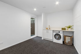 Wool carpet softens the tone, while double glazing, two heat pumps, and the inclusion of a washer/dryer, Venetian blinds, and sheers, confirm the home's move-in-ready comfort, with the bonus of a carpeted garaged.
